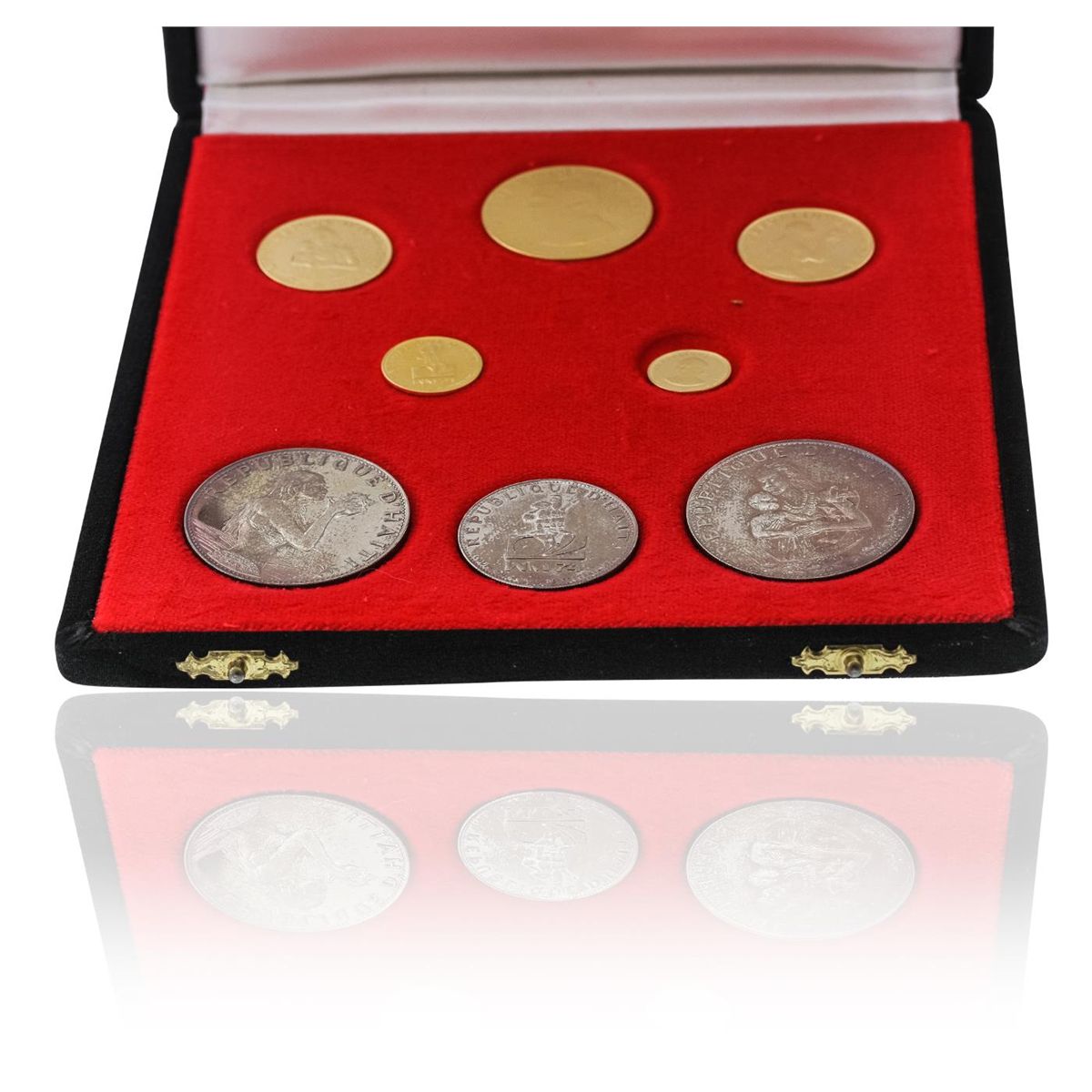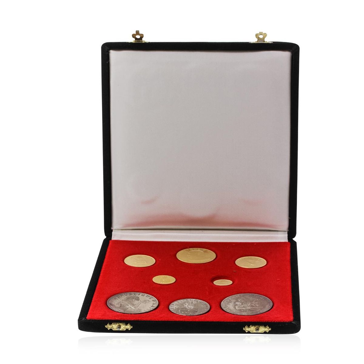 This set contains comes with original box contains 8 coins total, (5) of which are Gold coins weighing an approximate total .9235 grams. The original mintage of this set was 1250 sets.