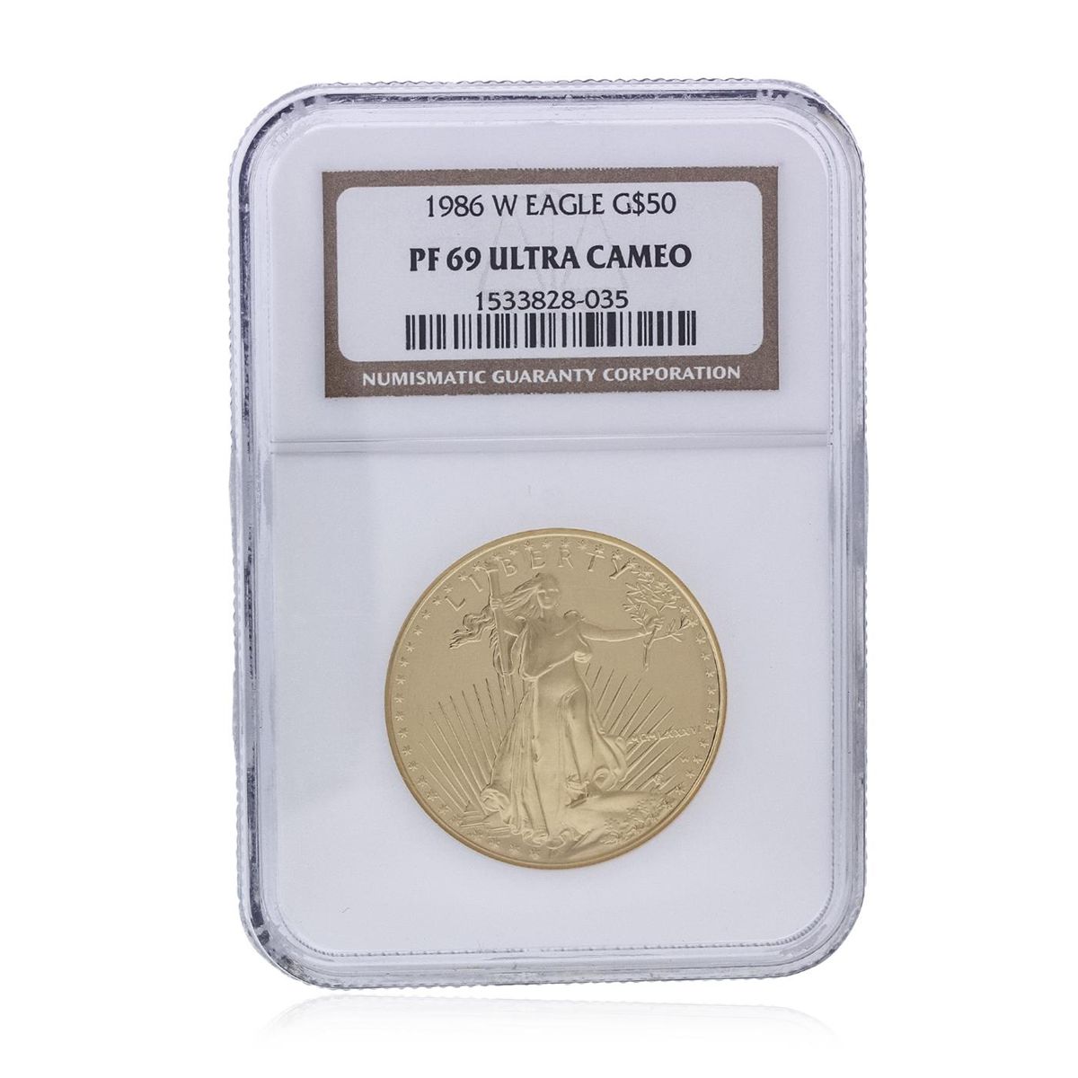 One 1986-W $50 1 Oz American Gold Eagle Coin NGC Graded PF69 Ultra Cameo
