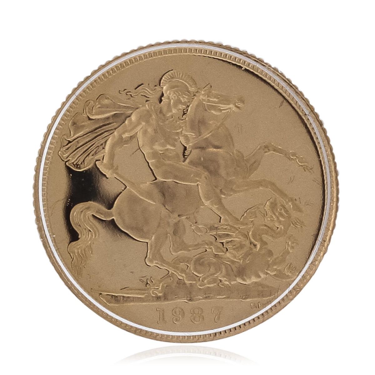 1987 United Kingdom Gold Proof Set complete with Original Box and Inserts. This set includes (3) 22 carat Gold Coins in Proof and Original Capsules. The three coins are broken down into (1) "Two Pounds" gold coin weighing 15.98 Grams, (1) "Sovereign" gold coin weighing 7.98 Grams, and (1) "Half Sovereign" gold coin weighing 3.99 Grams.