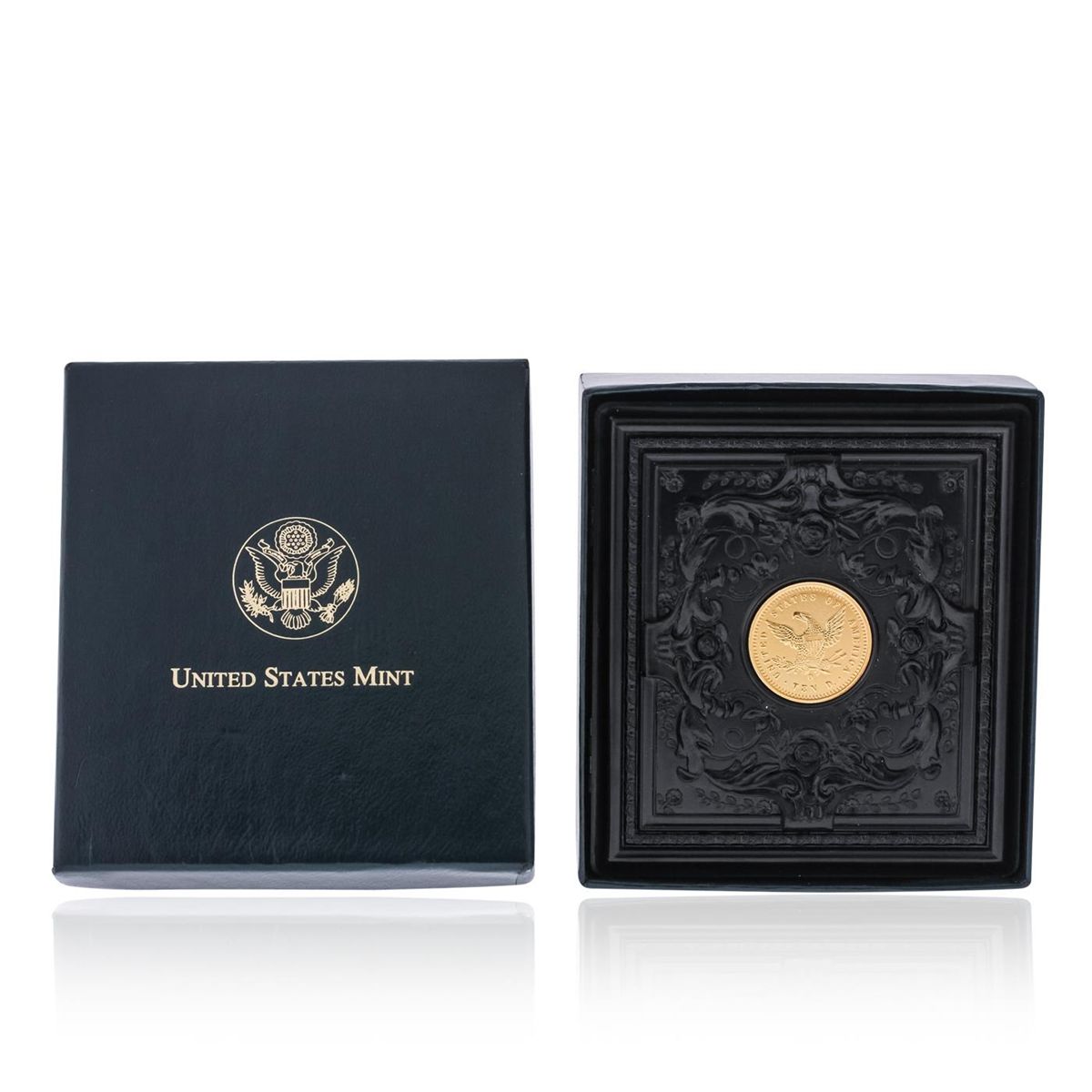 This set contains three commemorative proof coins, a 1995 West Point 22 carat Gold Five Dollar weighing aproximately 8.359 grams, 1995 San Francisco Silver Dollar and a 1995 Nickel Clad Half Dollar. The set comes with the COA and informational booklet. The coins are all encased in a "Union Case" replica. All packaging and the display case are in great, like new condition.