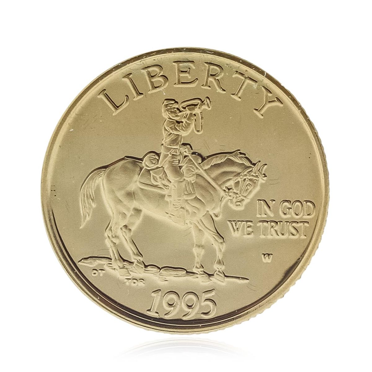 This set contains three commemorative proof coins, a 1995 West Point 22 carat Gold Five Dollar weighing aproximately 8.359 grams, 1995 San Francisco Silver Dollar and a 1995 Nickel Clad Half Dollar. The set comes with the COA and informational booklet. The coins are all encased in a "Union Case" replica. All packaging and the display case are in great, like new condition.