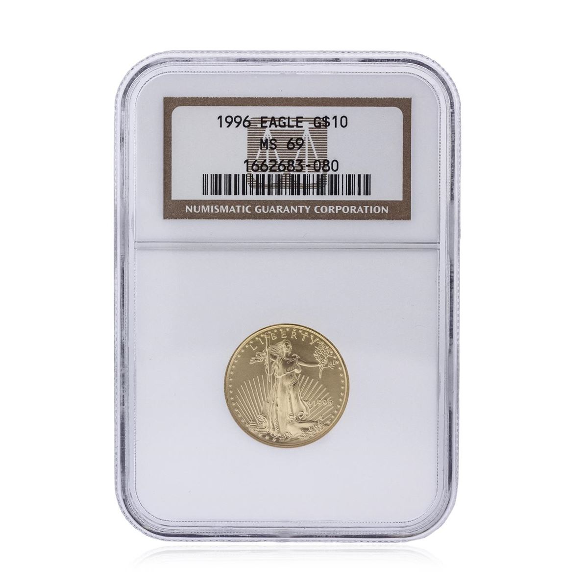 One 1996-W $10 American Gold Eagle 1/4 oz Gold Coin NGC MS69
