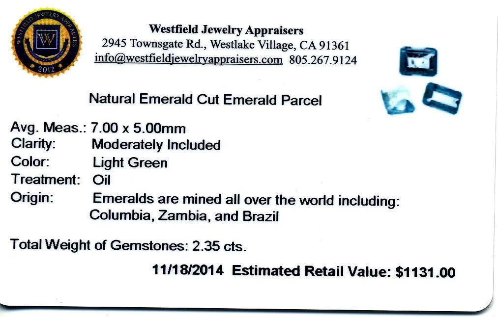 2.35cts. Natural Emerald Cut Emerald Parcel Westfield Appraised at $1,131.00.