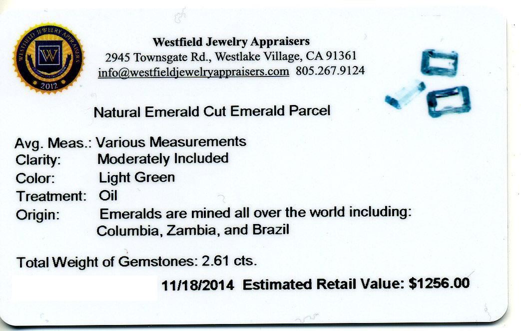 2.61cts. Natural Emerald Cut Emerald Parcel Westfield Appraised at $1,256.00.