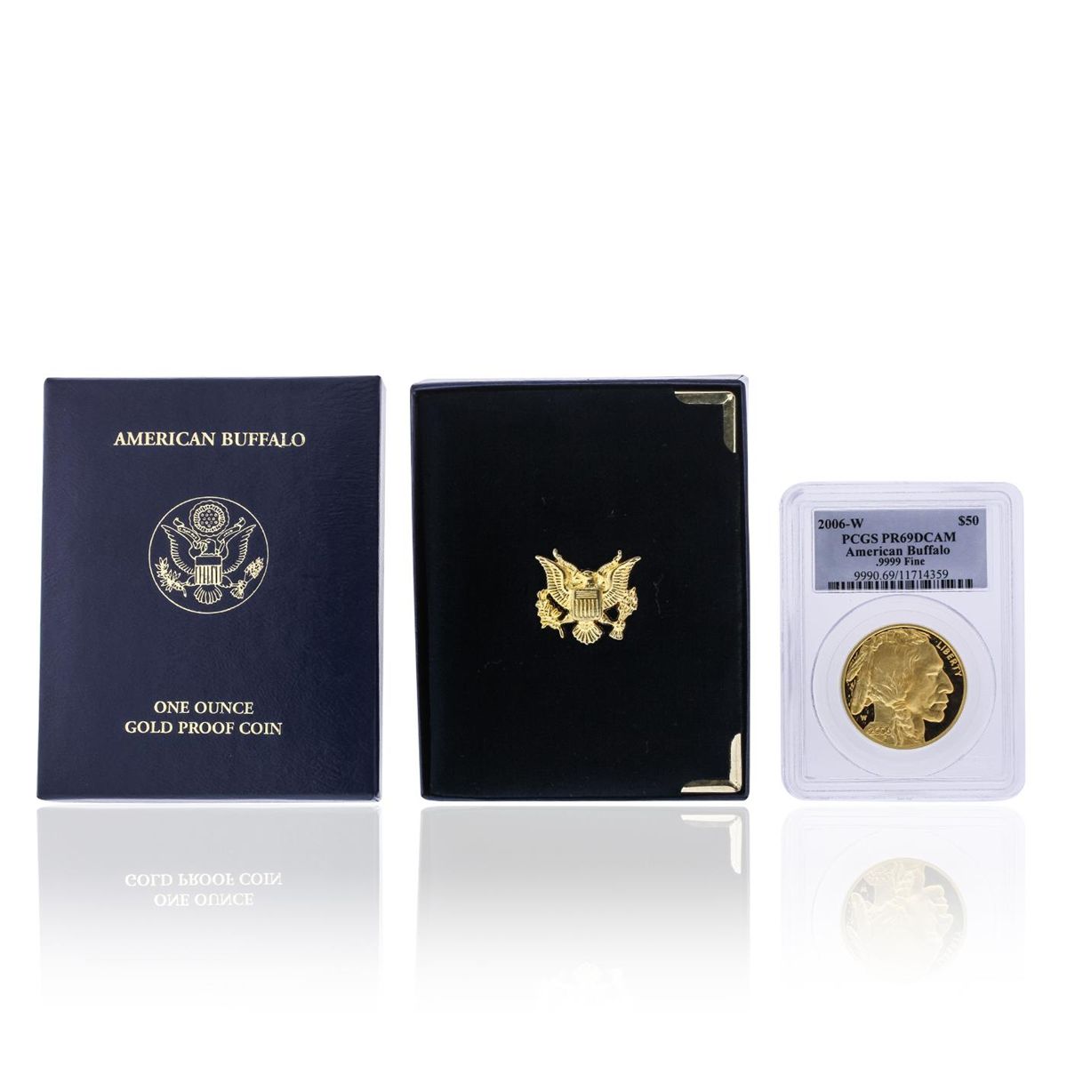 This gorgeous 2006-W $50 American Gold Buffalo Proof has been certified PR69 Deep Cameo by PCGS and comes complete with original Box and COA. This popular series marks the first time the U.S. Mint produced a .9999 fine 24-karat pure gold coin. A product of the West Point Mint, this 2006-W American Buffalo Proof features bold, strongly-struck devices on blazing gold fields. Many of these Deep Cameo Proofs have already become part of permanent collections, making now an ideal time to acquire this gorgeous and historic proof. From the exquisite details on the devices to the bright shining surfaces, this $50 Buffalo Proof is certain to please even the most discerning numismatist or Gold collector!