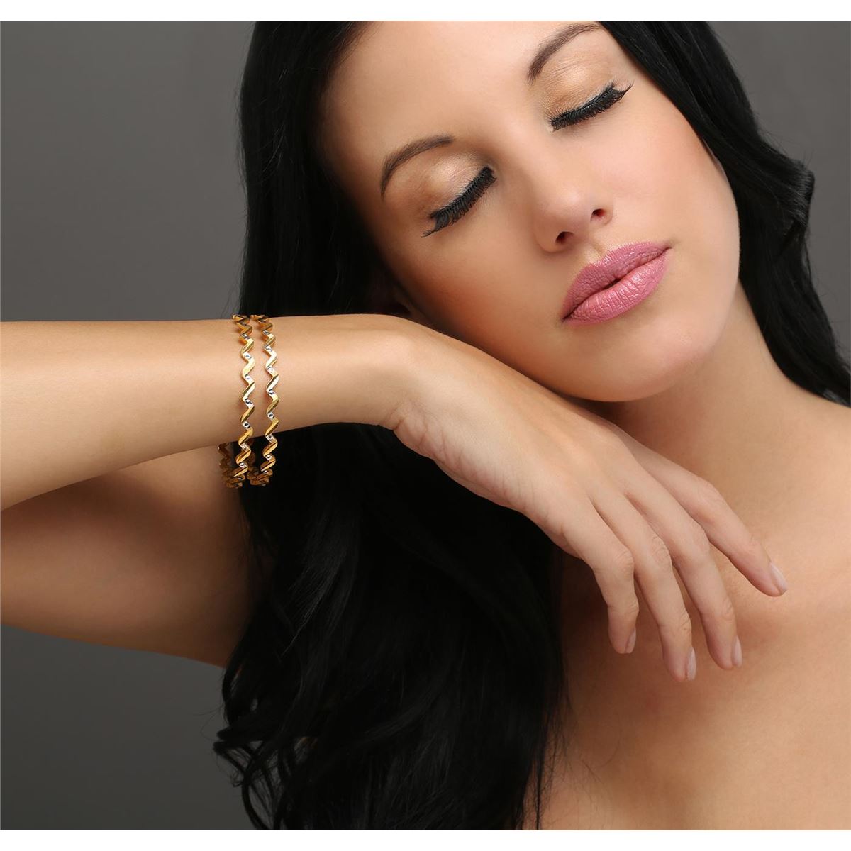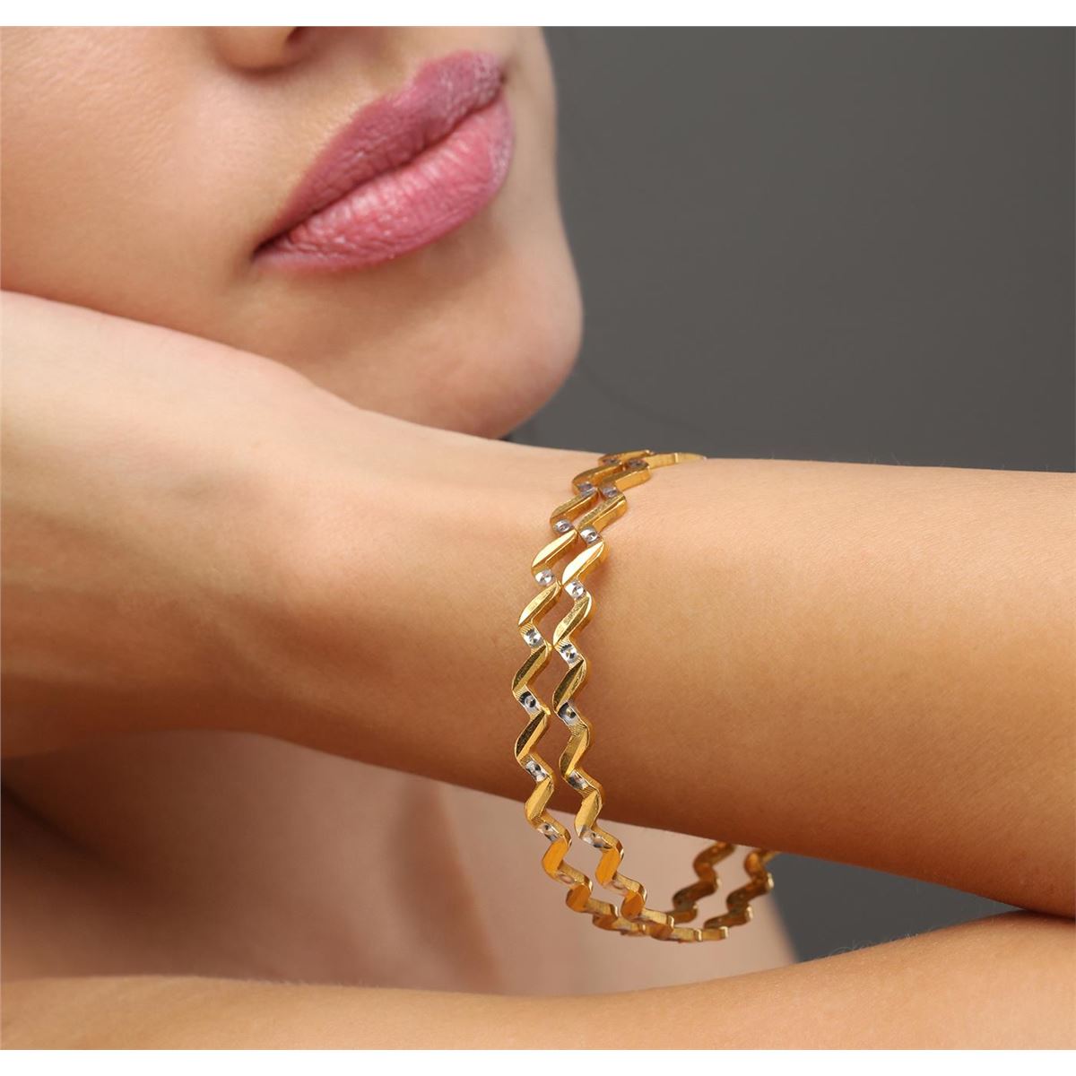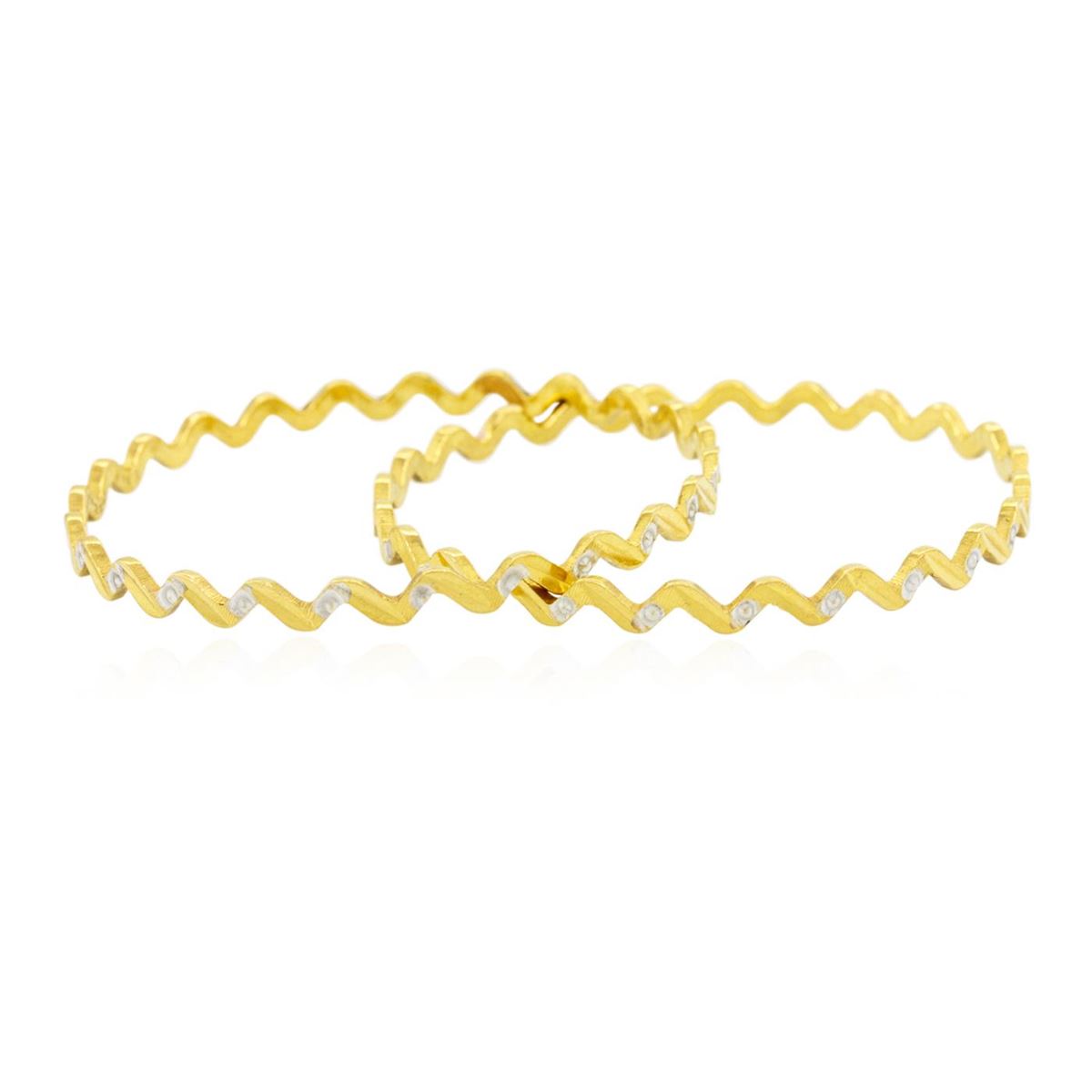 Beautiful pair of 22KT Yellow Gold Fancy Zig Zag Bangle Bracelets measuring 2-1/2" wide and weighs 30.00 grams.