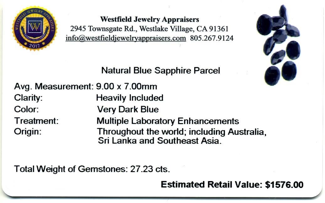 27.23cts Oval Cut Natural Blue Sapphire Parcel. Westfield Appraised at $1,576.00.