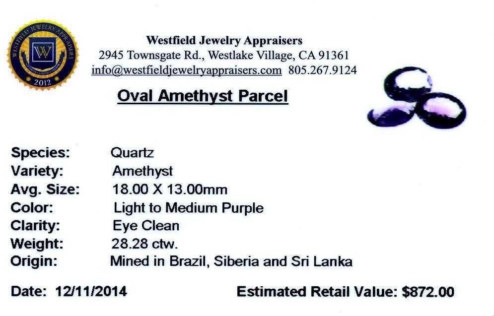 28.28ctw. Oval Amethyst Parcel Westfield Appraised at $872.00.