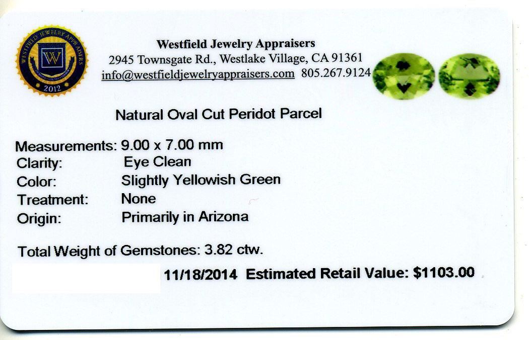 3.82ctw. Natural Oval Cut Peridot Parcel. Westfield Appraised at $1,103.00.