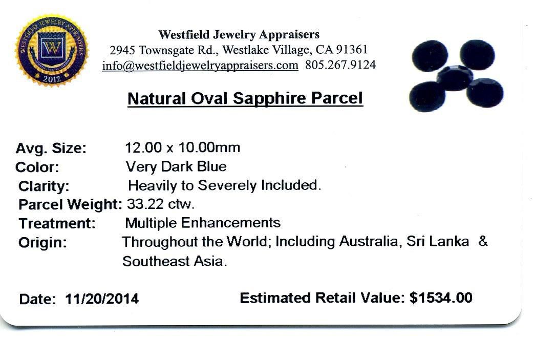 33.22cts. Natural Oval Sapphire Parcel Westfield Appraised at $1,534.00.