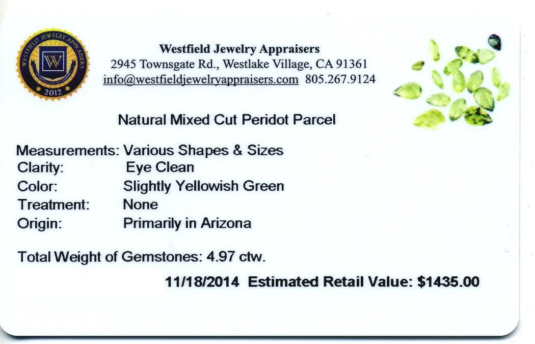 4.97ctw. Natural Mixed Cut Peridot Parcel. Westfield Appraised at $1,435.00.