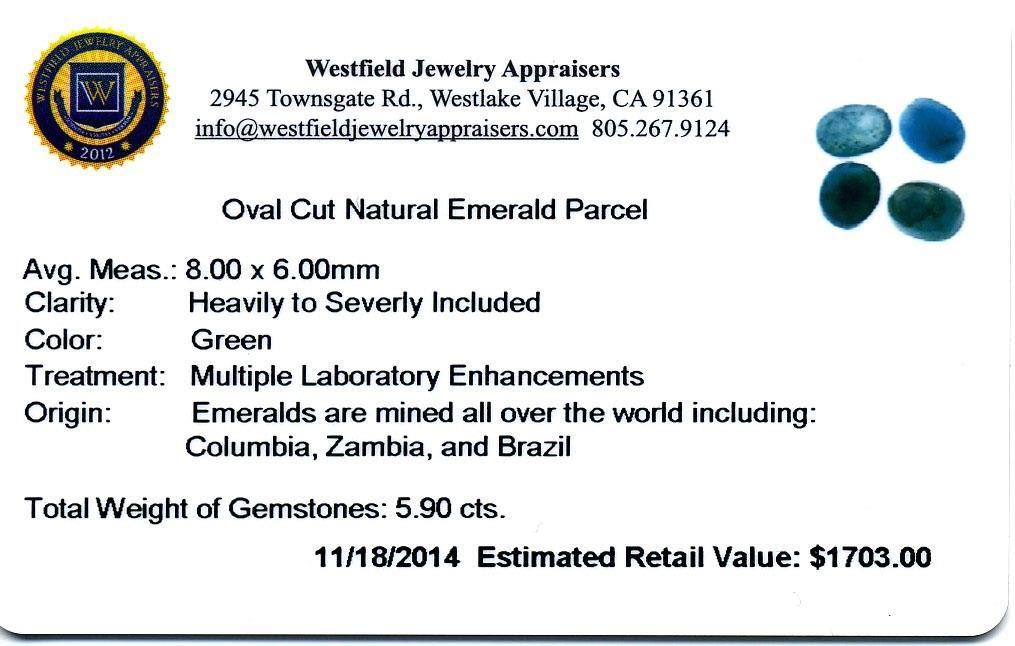 5.9cts. Oval Cut Natural Emerald Parcel Westfield Appraised at $1,703.00.