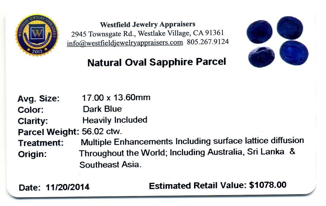 56.02ctw. Natural Oval Sapphire Parcel. Westfield Appraised at $1,078.00.