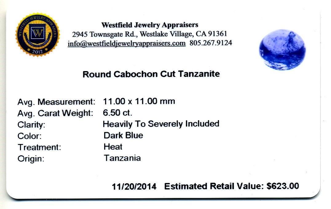6.5ctw. Round Cabochon Cut Tanzanite. Westfield Appraised at $623.00.