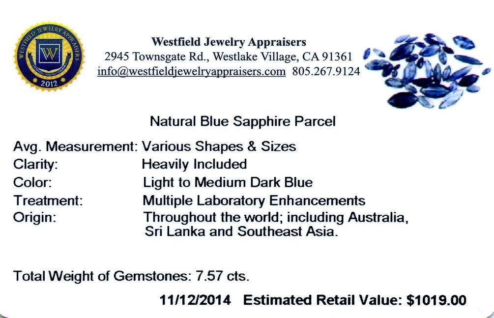 7.57ctw. Natural Blue Sapphire Parcel. Westfield Appraised at $1,019.00.