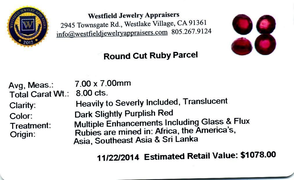 8.00cts. Round Cut Ruby Parcel Westfield Appraised at $1,078.00.