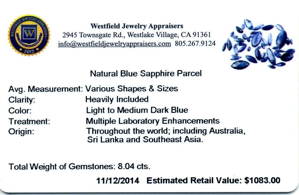 8.04ctw. Natural Blue Sapphire Parcel. Westfield Appraised at $1,083.00.