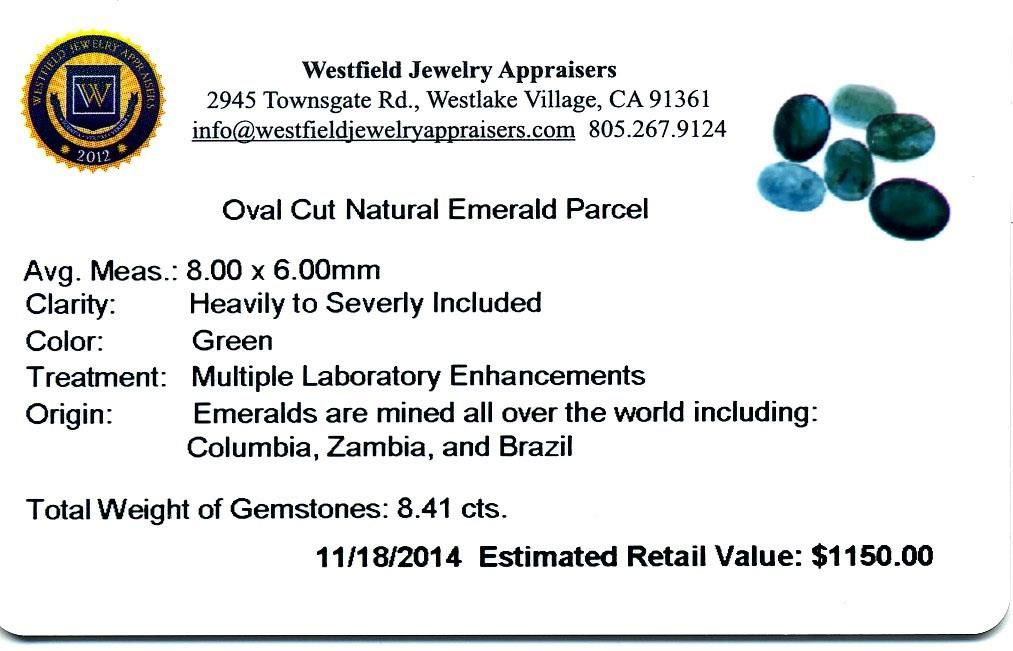 8.41cts. Oval Cut Natural Emerald Parcel Westfield Appraised at $1,150.00.