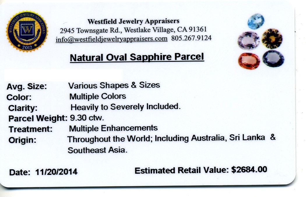9.3ctw. Natural Oval Sapphire Parcel. Westfield Appraised at $2,684.00.