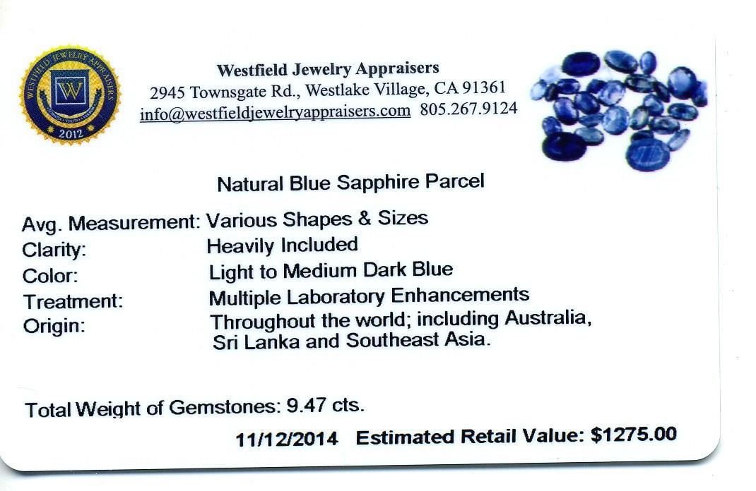 9.47ctw. Natural Blue Sapphire Parcel. Westfield Appraised at $1,275.00.