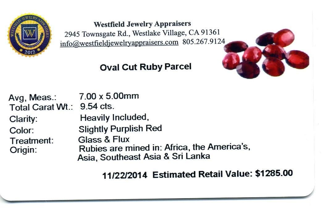 9.54ctw. Oval Cut Ruby Parcel. Westfield Appraised at $1,285.00.