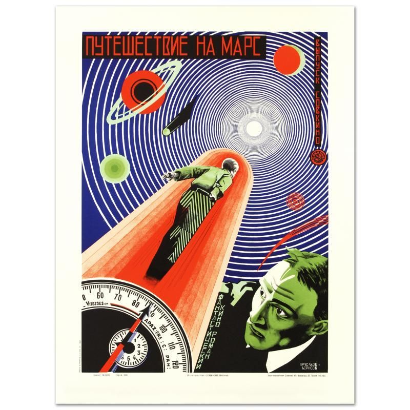 "A Journey to Mars" is a hand pulled lithograph on paper by the RE Society. Measures approx. 27" x 36" (with border), 22" x 31" (image).