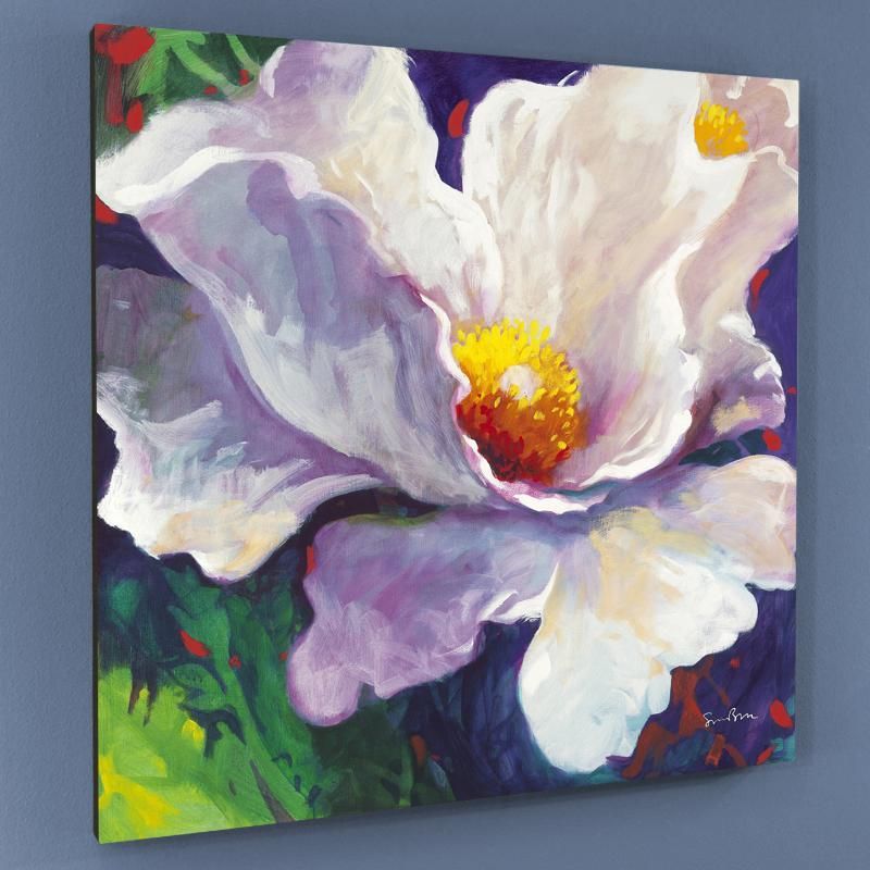 Simon Bull depicts gleaming flowers with bold hues and delicate details, creating graceful and elegant pieces of art. "A Soft Place To Fall" is a limited edition giclee on canvas, numbered and bearing Bull's authorized signature. This piece is gallery wrapped and ready to hang. Measures approx. 33" x 33" x 1.5" (image).