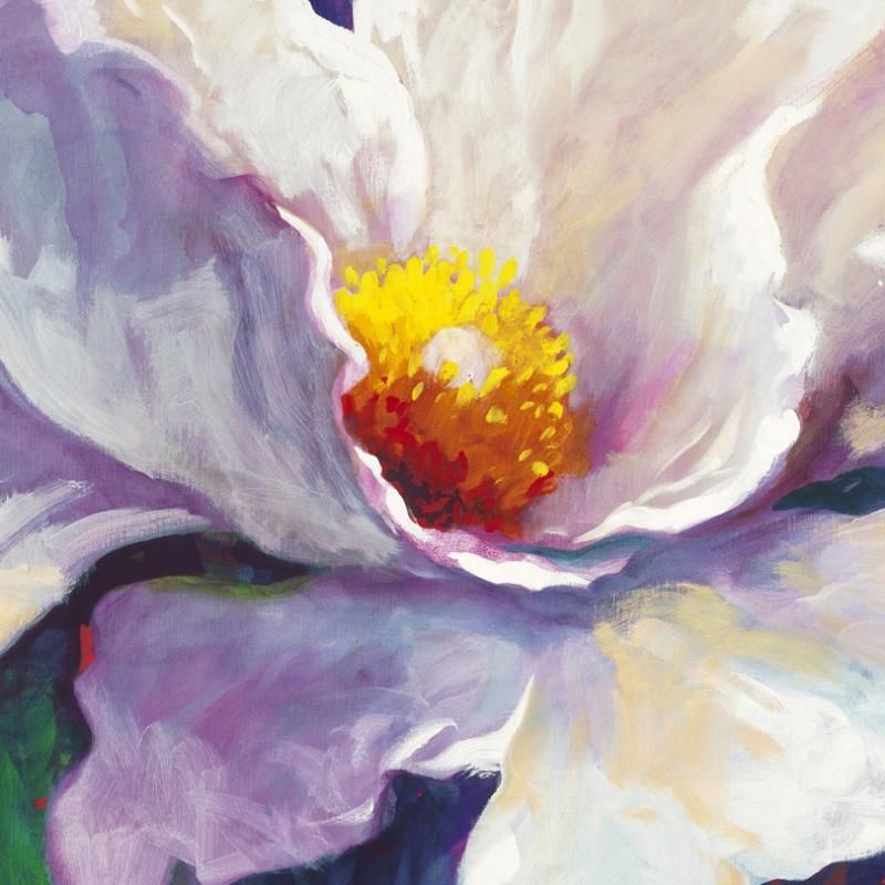 Simon Bull depicts gleaming flowers with bold hues and delicate details, creating graceful and elegant pieces of art. "A Soft Place To Fall" is a limited edition giclee on canvas, numbered and bearing Bull's authorized signature. This piece is gallery wrapped and ready to hang. Measures approx. 33" x 33" x 1.5" (image).