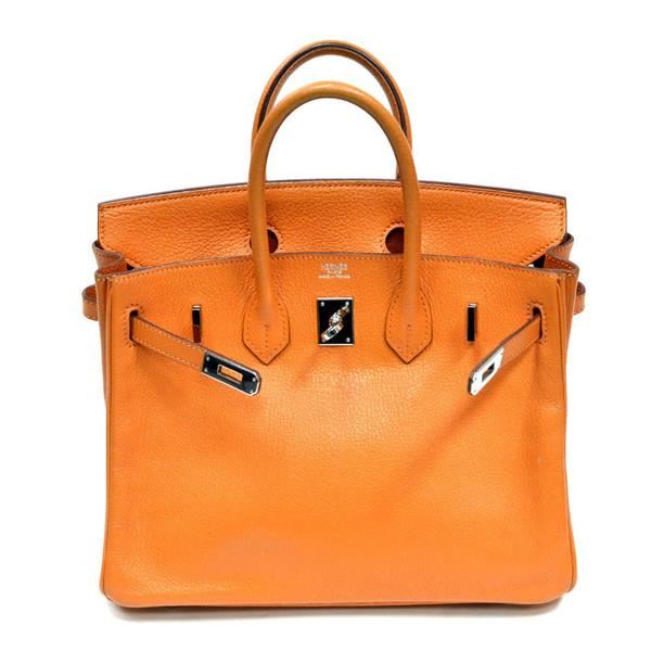 Authentic Hermes Birkin in a bright orange color way, giving you the perfect pop of color for Spring. It features palladium hardware throughout, which sits perfectly against the sunny hue. The bag is crafted from a type of calf leather known as ardenne, which is becoming rare since being discontinued by Hermes. It comes in good condition, having been pre-owned. Date stamp of X circle. 25cm size.