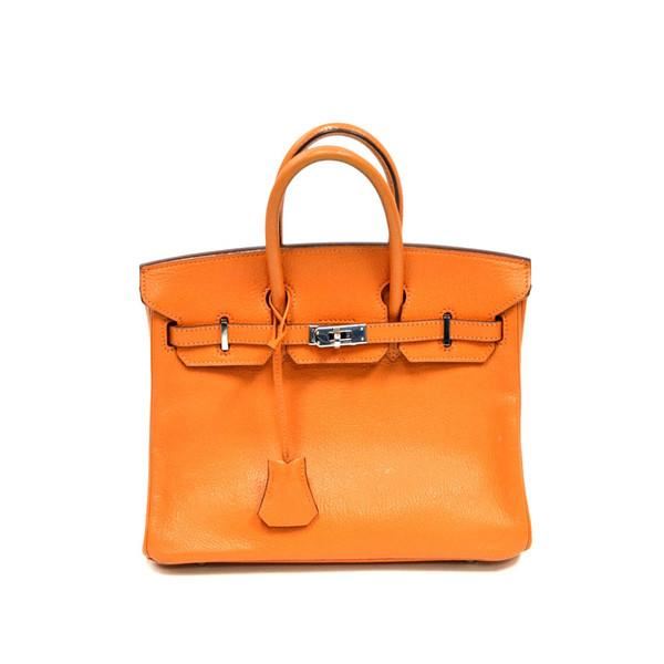 Authentic Hermes Birkin in a bright orange color way, giving you the perfect pop of color for Spring. It features palladium hardware throughout, which sits perfectly against the sunny hue. The bag is crafted from a type of calf leather known as ardenne, which is becoming rare since being discontinued by Hermes. It comes in good condition, having been pre-owned. Date stamp of X circle. 25cm size.