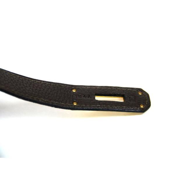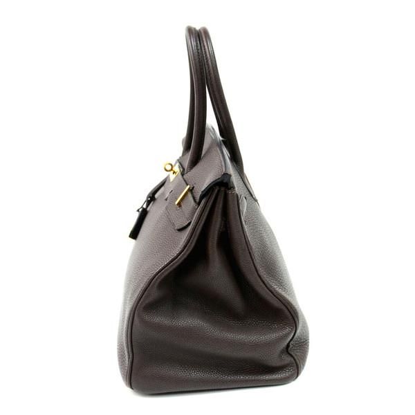 Authentic Hermes Birkin in a chocolate brown colorway. The bag is crafted from clemence leather which is considered to be one of the most hard wearing of Hermes leathers. The grain of this textured leather helps to prevent scratches, yet is still soft to touch. The bag features gold hardware throughout, and a date stamp of box L. It is in very good condition. 35cm size.
