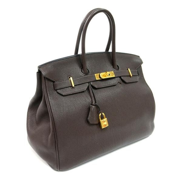 Authentic Hermes Birkin in a chocolate brown colorway. The bag is crafted from clemence leather which is considered to be one of the most hard wearing of Hermes leathers. The grain of this textured leather helps to prevent scratches, yet is still soft to touch. The bag features gold hardware throughout, and a date stamp of box L. It is in very good condition. 35cm size.