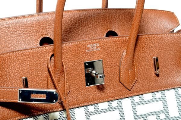 Authentic Hermes Birkin in a fun two tone canvas barenia, featuring palladium hardware throughout. A perfect bag for Spring, the prints combined with the golden leather create a timeless, yet very modern feel. It comes in excellent condition. Date stamp of L square. 35cm size.