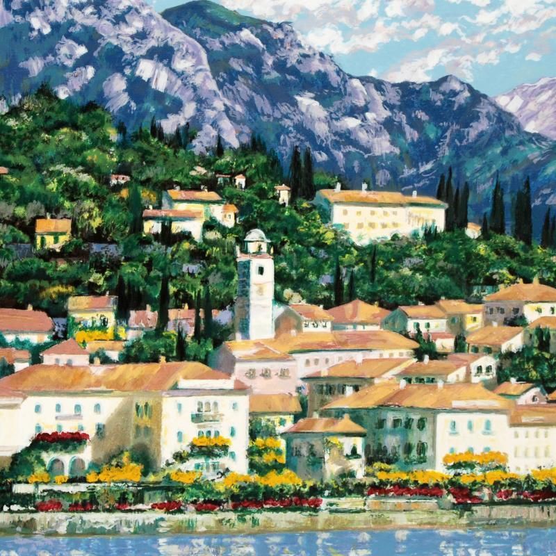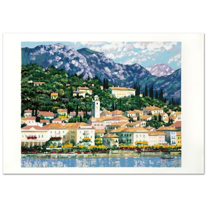"Bellagio Hillside" is an embellished limited edition serigraph on canvas, numbered and hand signed by Howard Behrens (1933-2014). Measures approx. 30" x 23.5" (image).