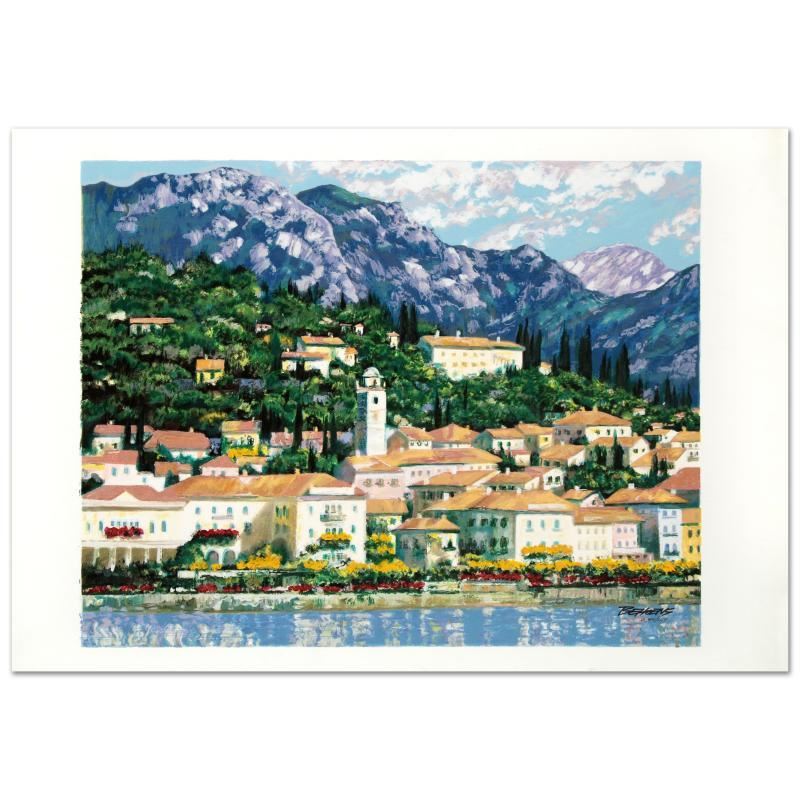 "Bellagio Hillside" is an embellished limited edition serigraph on canvas, numbered and hand signed by Howard Behrens (1933-2014). Includes Certificate of Authenticity! Measures approx. 30" x 23.5" (image).