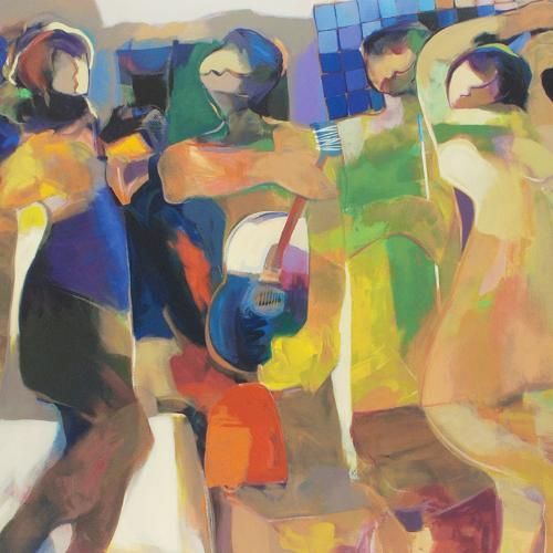 Displaying expressionist brushstrokes and vivid colors, Hessam Abrishami's paintings are rich with life and emotional intensity. "Beyond Borders" is a limited edition serigraph on canvas, numbered and hand signed by the artist. Measures approx. 48" x 36" (image).