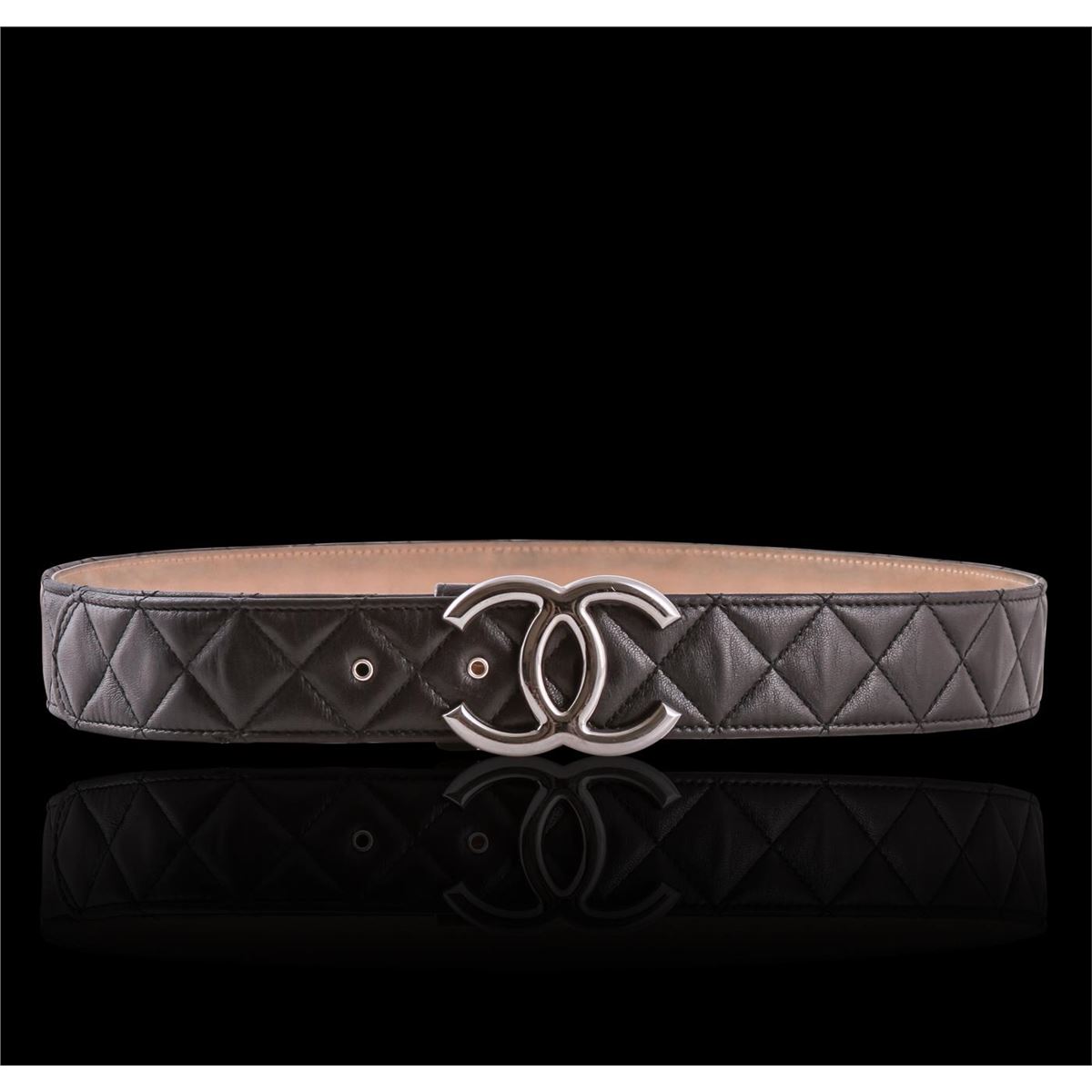 One Chanel Lambskin Quilted Belt featuring: Black Color, Double-C Buckle, Leather and Silvertone. Made in Italy.