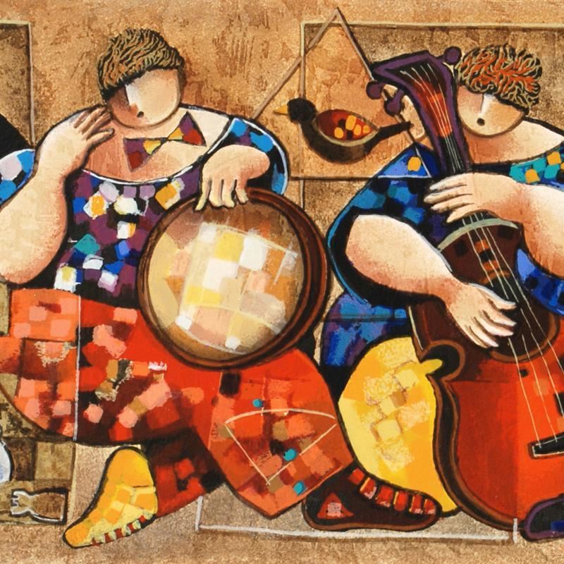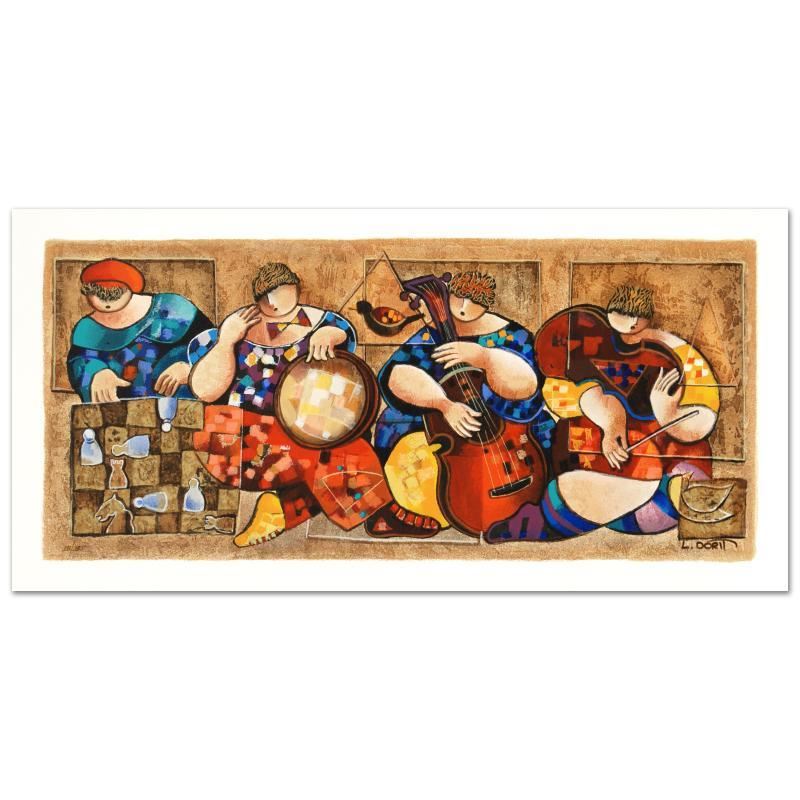 "Chess Players" is a limited edition serigraph on paper numbered and hand signed by Dorit Levi. Includes Certificate of Authenticity! Measures approx. 13" x 26.5" (with border), 11" x 24.5" (image).