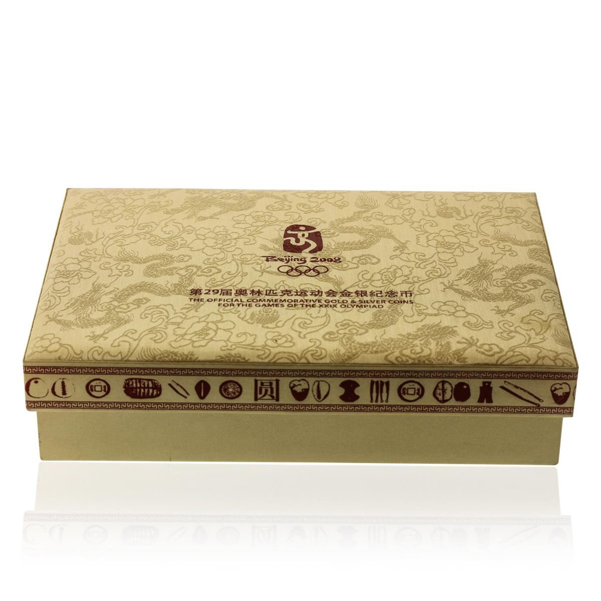 Celebrate the spirit of China and the Beijing Olympics with this ultra limited proof collection. Only 60,000 minted worldwide. This 6 coin set includes two 150 Yuan .9999 gold coins (approx 1/3 oz - .10264 grams) and four 10 Yuan .999 silver (just under 1 oz - .31.103 grams) proof coins from the SECOND series of 2008 Beijing Olympic Commemoratives. An ancient Chinese weightlifting event and an ancient Chinese swimming event are featured on the two Gold Proofs. The four Silver Proofs depict the Great Wall of China, Tower of Buddhist Incense, the courtyard residence in Beijing, and the White Pagoda of Beihai Park in Beijing. These coins are contain the following metal Gold and Silver Denomination: 150 Yuan and 10 Yuan Mintage: 60,000 sets (worldwide) Purity: .999. These are Proof grade coins and this collection is housed in a beautiful finished wood clamshell box and gold container to house the box. A wonderful Chinese collectible from the 2008 Chinese Olympics.