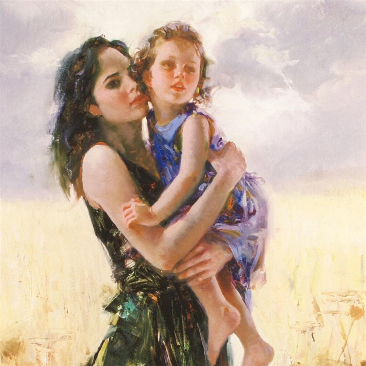 Pino's portraits allow glimpses into intensely personal, intimate spaces, conveying emotion through rich, warm color and sensual brushwork. "Close to My Heart" is a limited edition giclee on paper, numbered and hand signed by Pino (1939-2010). Measures approx. 17" x 22.5" (with border); 15" x 20" (image).