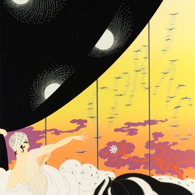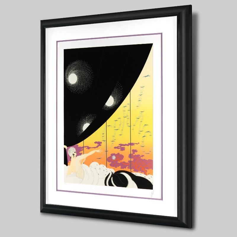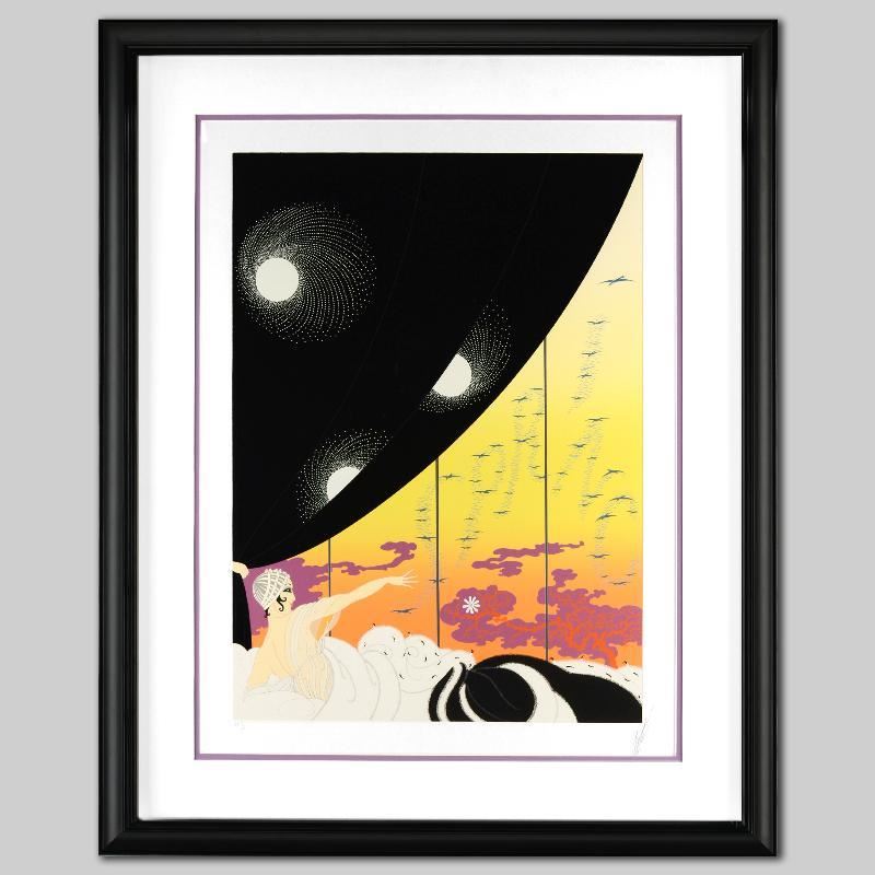 Known as "The Father of Art Deco," Erte (1892-1990) and his immense talent have been recognized by art collectors through the ages. His clean lines and intricate designs are awe-inspiring. "Coming of Spring" is a limited edition serigraph on paper, AP numbered 9 out of 60 and hand signed by the artist. This piece is custom framed using acid free materials and is ready to hang. Includes Certificate of Authenticity! Measures approx. 30.5" x 37" (with frame), 18" x 25" (image).