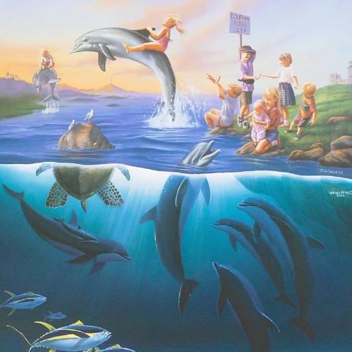 Journey into a world of lifelike imagery and captivating color with this breathtaking collaboration between artists Jim Warren and Wyland! "Dolphin Rides" is a limited edition lithograph on paper, numbered and hand signed by Wyland and Jim Warren! Includes Certificate of Authenticity! Measures approx. 18" x 26" (with border), 16.5" x 22.5" (image).