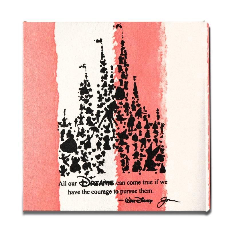 "Dreams Come True" is a one-of-a-kind hand-pulled silkscreen and acrylic painting on gallery wrapped canvas by Gail Rodgers, hand signed by the artist. Measures approx. 17" x 17" (image).
