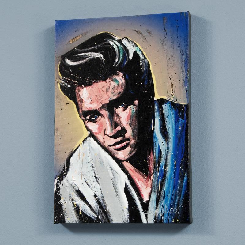 Combining his passions for music and art, David Garibaldi creates stunning visual poetry. "Elvis Presley (Blue Suede)" is a limited edition giclee on stretched canvas, numbered and bearing the artist's authorized signature. This piece is gallery wrapped and ready to hang. Measures approx. 24" x 30" (image).