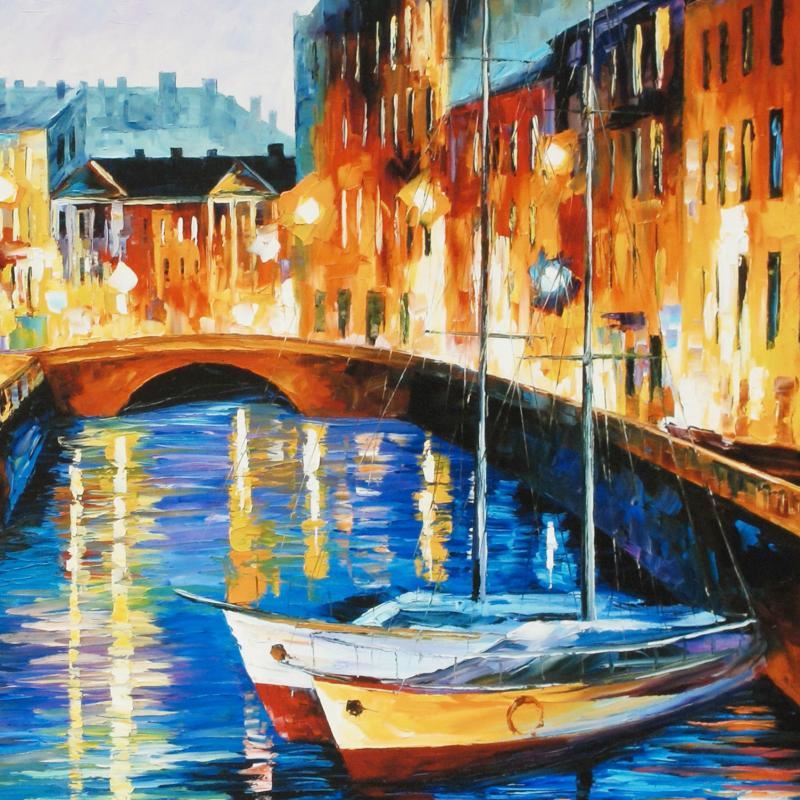 Leonid Afremov's masterful use of color and texture make his paintings unique collectibles that are sure to brighten any wall. "Evening River" is a limited edition giclee on stretched canvas, numbered in verso and bears Afremov's authorized signature. This piece comes gallery wrapped and ready to hang. Measures approx. 24" x 18" (image).
