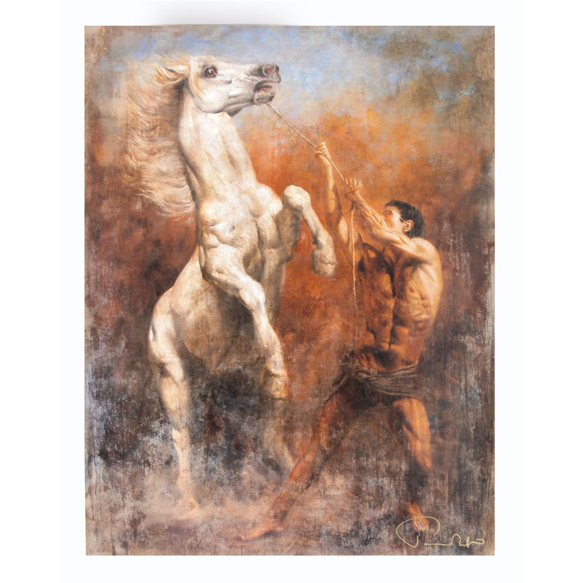 With a style that is reminiscent of the frescoes of Michelangelo and Caravaggio, Tomasz Rut creates breathtaking works of art that captures the beauty of the human form. "Fiero" is a limited edition giclee on canvas, numbered and hand signed by Rut. Measure approx. 31" x 40" (image).
