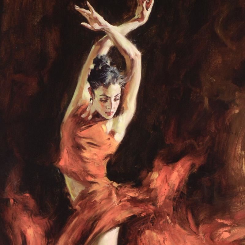 "Fiery Dance" is a limited edition hand embellished giclee on stretched canvas by Andrew Atroshenko, numbered and hand signed by the artist! Measures approx. 24" x 40" (image).