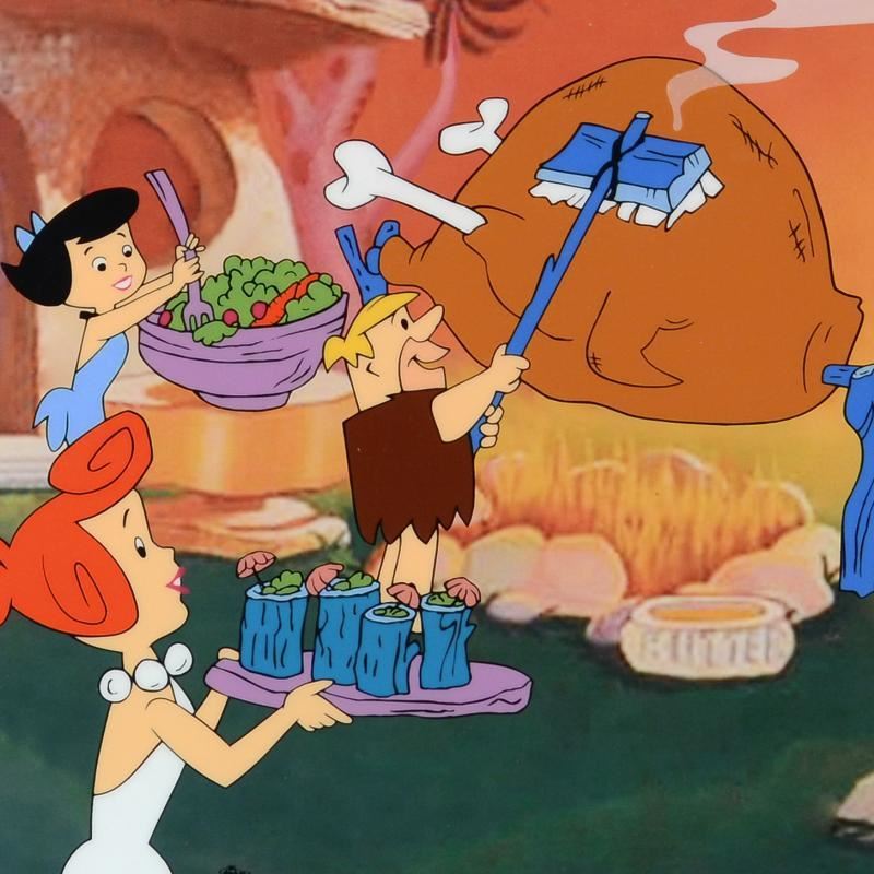 "Flintstones Barbecue" is a limited edition sericel officially licensed by Universal Studios Licensing! This piece comes framed and is ready to hang. Measures approx. 18.5" x 16" (with frame), 12" x 10" (image with background).