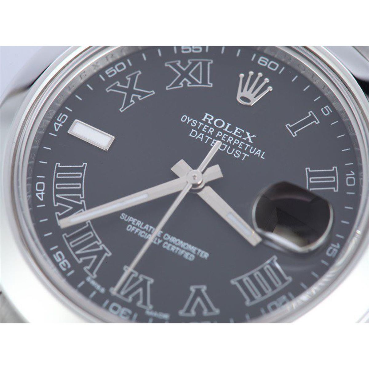 One gents stainless steel Rolex DateJust wristwatch. Model Name/Number: Datejust 116300. The watch features automatic movement with date, quickset, scratch-resistant sapphire crystal, waterproof screw-down crown. Case: Stainless steel with smooth bezel (41 mm), inner reflector ring engraved with serial number. Dial: Black with Roman numeral hour markers. Bracelet: Stainless Steel Oyster.