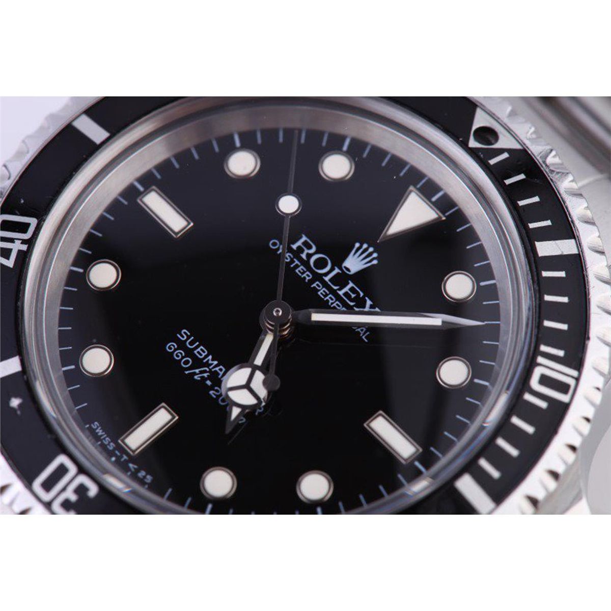 One gents stainless steel Rolex Submariner wristwatch. Model Name/Number: Submariner 5513. The watch features automatic 1520 movement, waterproof screw-down crown, acrylic crystal. Case: Stainless steel case, rotating divers bezel, pierced lugs. Dial: Black "spider" dial. Bracelet: Rolex 93150 Oyster with 580 end links (12 links).